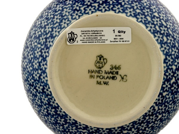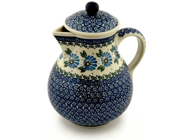 This polish pottery pitcher with lid (item number H3643A)