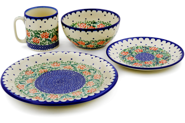 A: Dinner plate is 10.2" , dessert plate 7.6", bowl 6.1" and holds 24 oz , mug holds 12 oz.