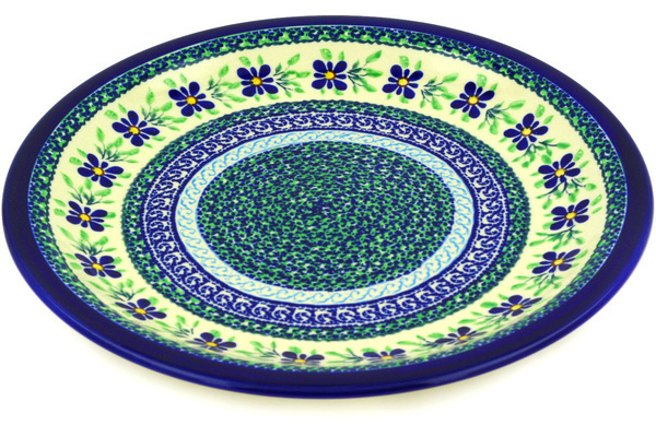 • Polish Pottery Plate 9" Peacock Forget-me-not