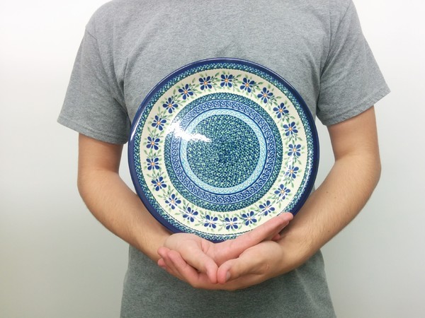 This polish pottery plate (item number H0120E) is made by talented artisans from Poland. It is 1" high and measures 10.8" by 10.8". The weight of this plate is 2.31 lbs. The price of this plate is $120.99 and if your total is over $99 you will get FREE SHIPPING.