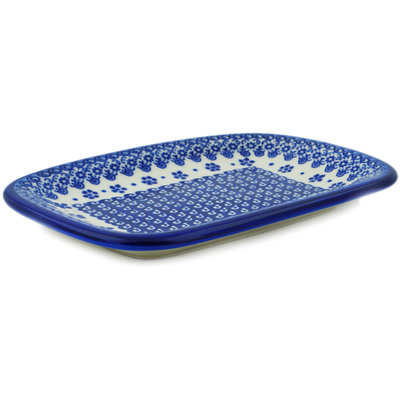This polish pottery platter (item number H4714N) is made by talented artisans from Poland. It is 1.2" high and measures 7" by 9.8". The weight of this platter is 1.84 lbs.