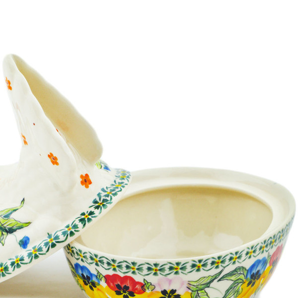 This polish pottery cheese lady (item number H4028N) is made by talented artisans from Poland. It is 4" high and measures 4" by 4". The weight of this cheese lady is 0.66 lbs.
