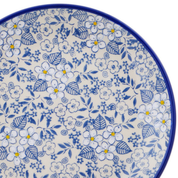 This polish pottery plate (item number H1313Q) is made by talented artisans from Poland. It is 1.2" high and measures 7.9" by 7.9". The weight of this plate is 1.04 lbs.