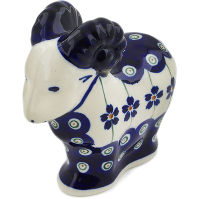 This polish pottery ram figurine (item number H8624L) is made by talented artisans from Poland. It is 3.9" high and measures 2.2" by 4.5". The weight of this ram figurine is 0.49 lbs.