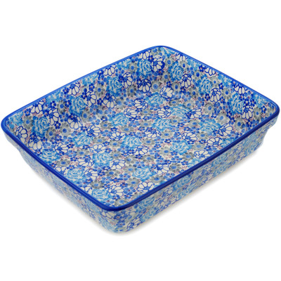 This polish pottery rectangular baker (item number H3931P) is made by talented artisans from Poland. It is 3" high and measures 10.7" by 12.1". It holds 125 ounces of fluid. The weight of this rectangular baker is 4.27 lbs.