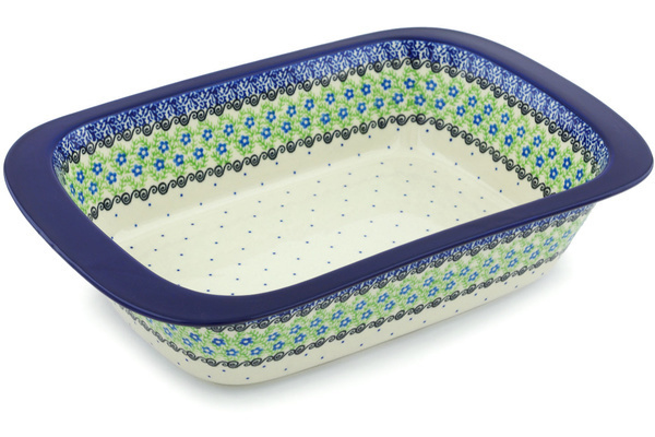 • Polish Pottery Rectangular Baker 11" Water Tulip