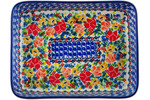 • Polish Pottery Rectangular Baker 10" Red Zinnia
