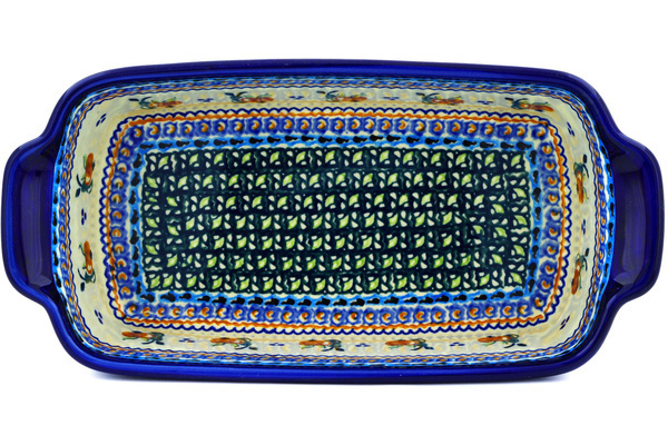 This polish pottery rectangular baker with handles (item number H2896D)