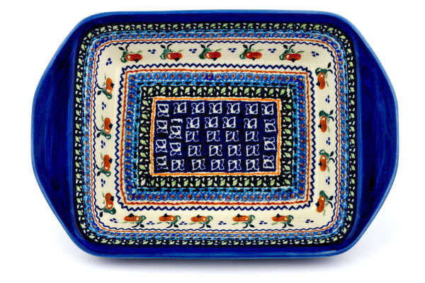 This polish pottery rectangular baker with handles (item number H3560C)