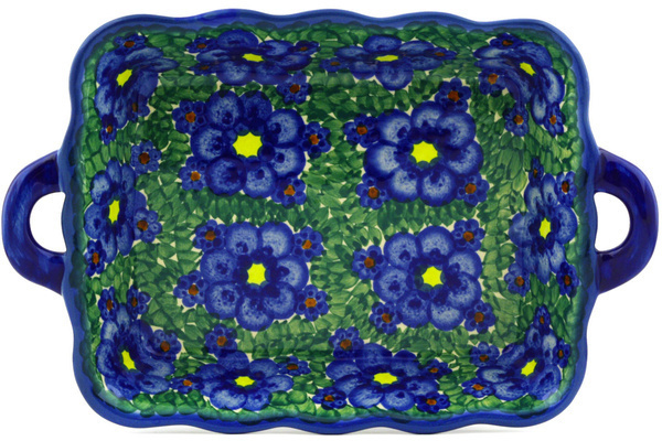 This polish pottery rectangular baker with handles (item number H7315E)