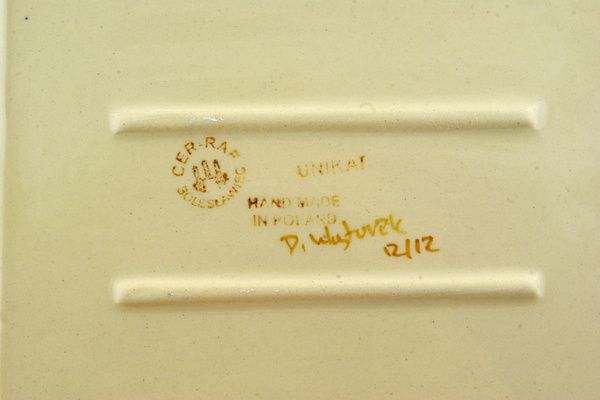 Unikat (Signature) rectangular baker with handles, which means that it has been hand painted with both sponges and brushes and it