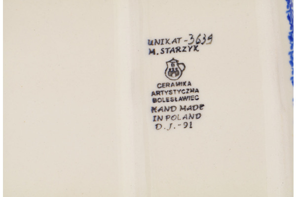 Unikat (Signature) rectangular baker with handles, which means that it has been hand painted with both sponges and brushes and it