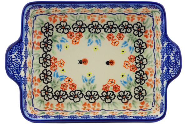 This polish pottery rectangular baker with handles (item number H3221J)