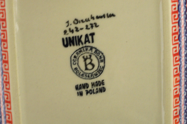 Unikat (Signature) rectangular baker with handles, which means that it has been hand painted with both sponges and brushes and it