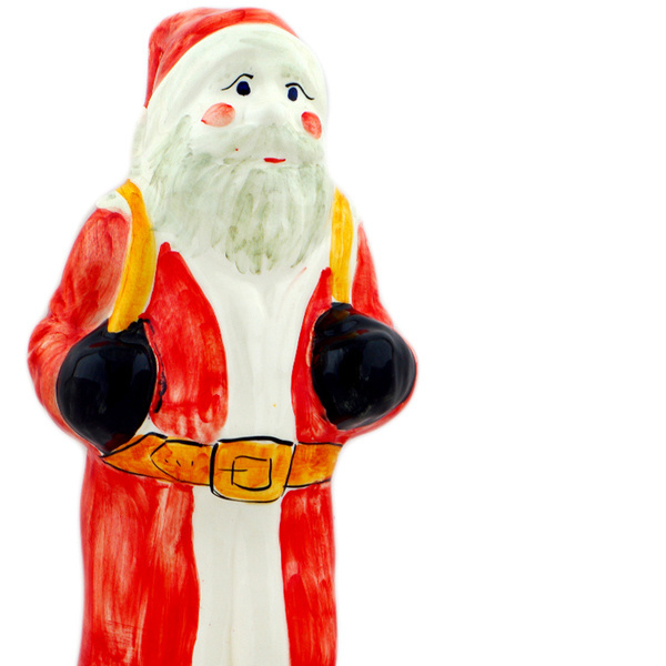 This faience santa claus figurine (item number H4954N) is made by talented artisans from Poland. It is 1.8" high and measures 1.3" by 4.4". The weight of this santa claus figurine is 0.15 lbs.