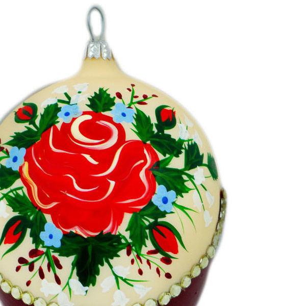 This glass egg ornament (item number H5899N) is made by talented artisans from Poland. It is 5.1" high and measures 3.4" by 3.4". The weight of this egg ornament is 0.1 lbs.