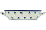 A: Yes it is. We also have 14" baker without handles:https://www.artisanimports.com/polish-pottery/oval-baker-14-inch-forget-me-not-h0751i