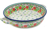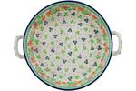 A: Yes it is. We also have 14" baker without handles:https://www.artisanimports.com/polish-pottery/oval-baker-14-inch-forget-me-not-h0751i