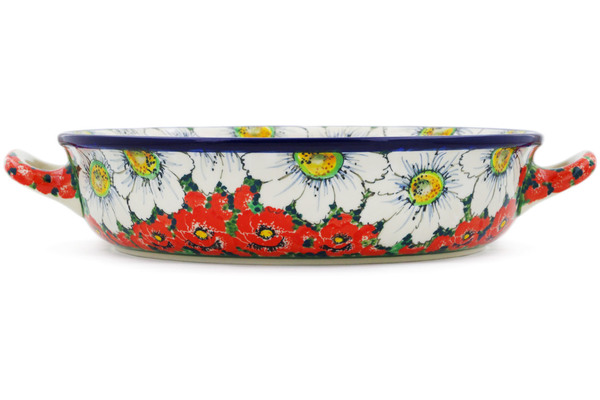 This Polish pottery round baker with handles is currently out of stock in our Texas warehouse. However, we can special order it from Boleslawiec if you're willing to wait 6-12 months.