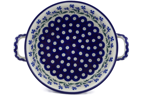 • Polish Pottery Round Baker with Handles 8" Peacock Pines