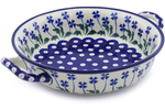 • Polish Pottery Round Baker with Handles 6½-inch Blue Poppies