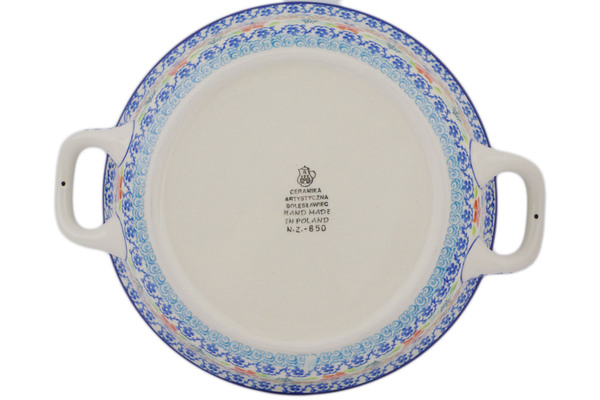 • Polish Pottery Round Baker with Handles Medium Sapphire Garden