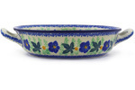 • Polish Pottery Round Baker with Handles Medium Blue Pansy