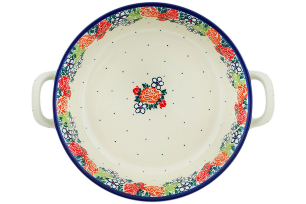 • Polish Pottery Round Baker with Handles 10" Red Bouquet UNIKAT