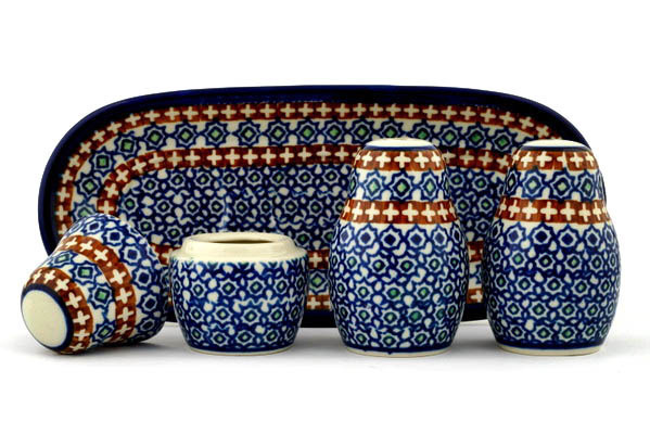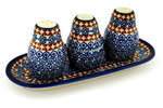 Polish Pottery Salt and Peppers with Toothpick Holder.