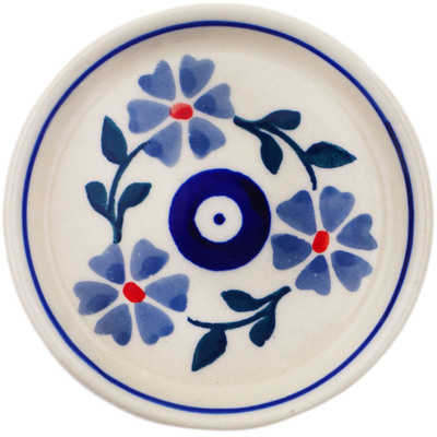 This polish pottery saucer (item number H8961P) is made by talented artisans from Poland. It is 0.6" high and measures 3.2" by 3.2". The weight of this saucer is 0.08 lbs.