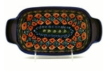 Unikat (Signature) rectangular baker with handles, which means that it has been hand painted with both sponges and brushes and it