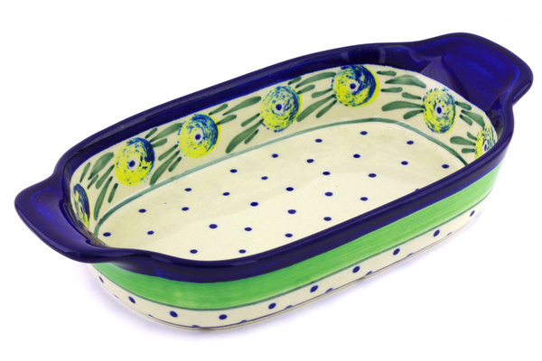 This Polish pottery rectangular baker with handles is currently out of stock in our Texas warehouse. However, we can special order it from Boleslawiec if you're willing to wait 6-12 months.
