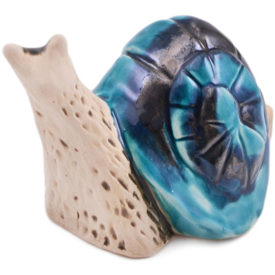 This ceramic snail figurine (item number H3188M) is made by talented artisans from Poland. It is 5" high and measures 3.5" by 5.7". The weight of this snail figurine is 0.8 lbs.