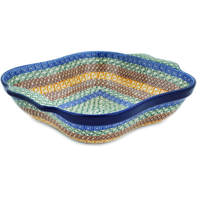 This polish pottery square baker with handles (item number H8704G)