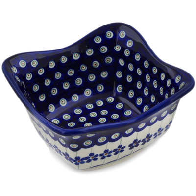 This polish pottery square bowl (item number H1318L) is made by talented artisans from Poland. It is 3.1" high and measures 5.8" by 5.8". It holds 21 ounces of fluid. The weight of this square bowl is 1.3 lbs.