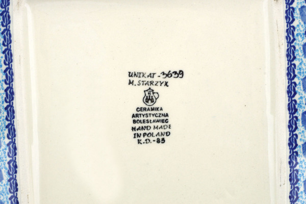 This is Polish Pottery Unikat (Signature) square plate, which means that it has been hand painted with both sponges and brushes and it is signed by the artist who painted it. Unikat pieces are the most involving works of art. Larger Unikat items take a few hours of very careful work to finish.