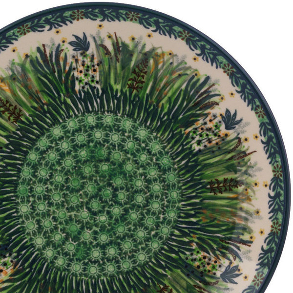 This polish pottery bowl (item number H3985I) is made by talented artisans from Poland. It is 4.9" high and measures 10.7" by 10.7". It holds 117 ounces of fluid. The weight of this bowl is 4.3 lbs.