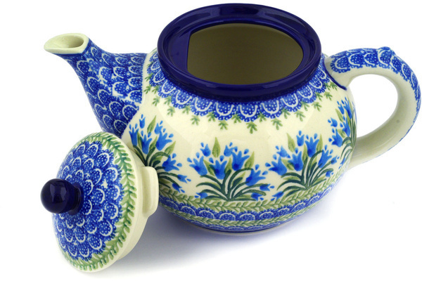 • Polish Pottery Tea or Coffee Pot 42 oz Blue Tulip Garden UNIKAT