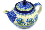• Polish Pottery Tea or Coffee Pot 5 cups Blue Zinnia