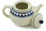 This polish pottery tea or coffee pot (item number H1741H) is made by talented artisans from Poland. It is 6.1" high and measures 6.1" by 9.7". It holds 41 ounces of fluid. The weight of this tea or coffee pot is 2.01 lbs. The price of this tea or coffee pot is $115.95 and if your total is over $99 you will get FREE SHIPPING.