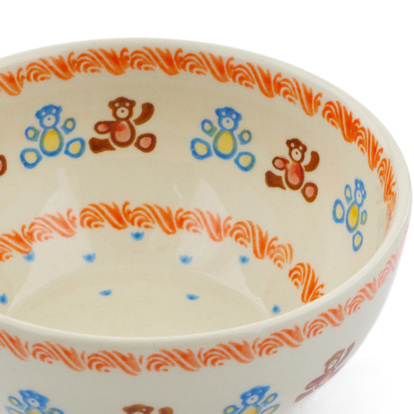 This polish pottery bowl (item number H3169J) is made by talented artisans from Poland. It is 3.2" high and measures 6.3" by 6.3". It holds 25 ounces of fluid. The weight of this bowl is 1.07 lbs.
