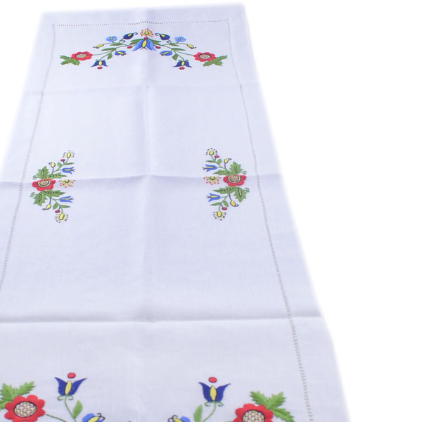 This linen cloth table runner (item number H5930N) is made by talented artisans from Poland. It measures 12.1" by 48". The weight of this cloth table runner is 0.26 lbs.